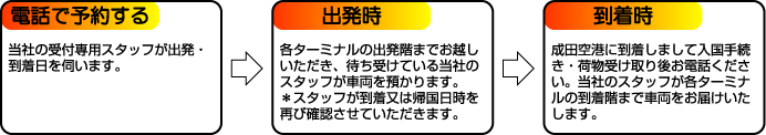 ご予約の際、車両とフライトの情報(航空会社名・便名等)を手元においてご連絡ください。